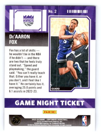De’Aaron Fox 2024 Contenders Game Night Ticket