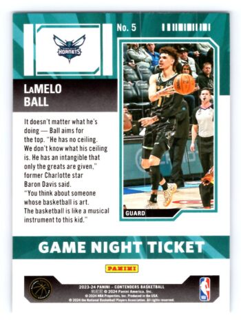 LaMelo Ball 2024 Contenders Game Night Ticket