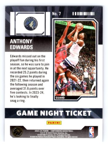 Anthony Edwards 2024 Contenders Game Night Ticket
