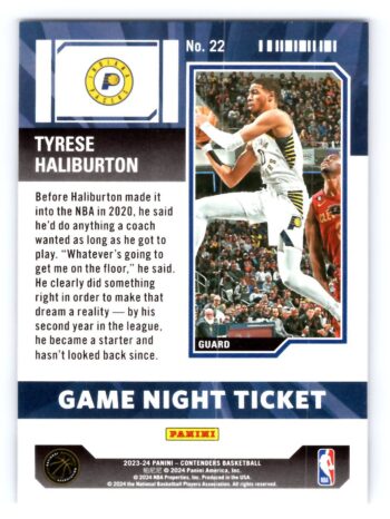 Tyrese Haliburton 2024 Contenders Game Night Ticket