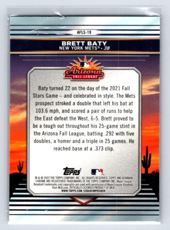 Brett Baty 2022 Bowman Chrome Arizona Fall League