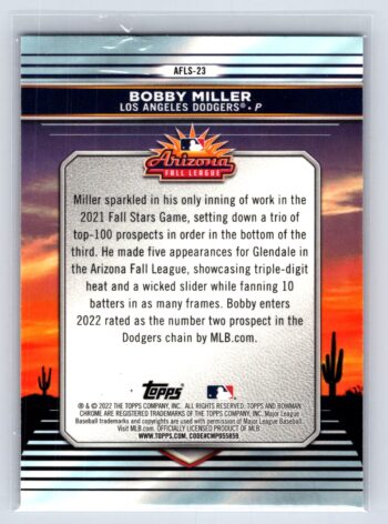 Bobby Miller 2022 Bowman Chrome Arizona Fall League
