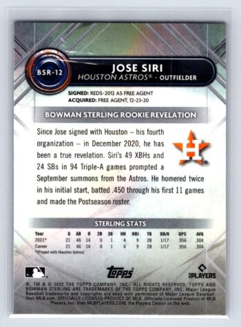 Jose Siri RC Rookie 2022 Bowman Sterling