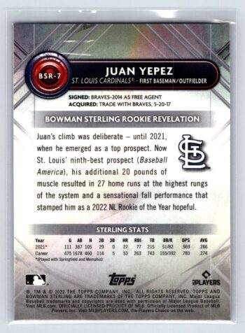 Juan Yepez RC Rookie 2022 Bowman Sterling