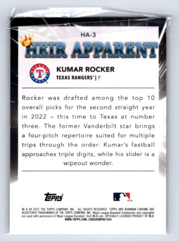 Kumar Rocker 2022 Bowman Chrome Heir Apparent