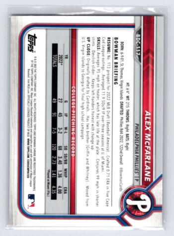 Alex McFarlane Refractor 2022 Sky Blue Bowman Chrome