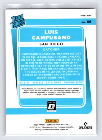 Luis Campusano Refractor 2021 Donruss Optic Rated Prospect
