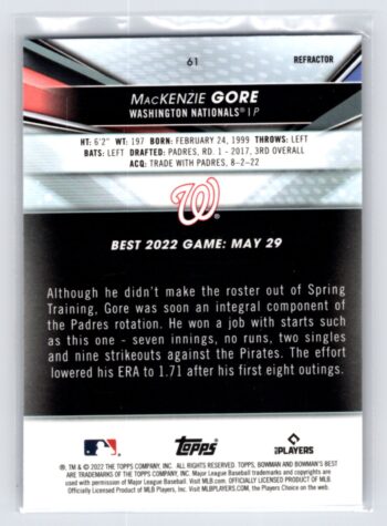 MacKenzie Gore RC Rookie Refractor 2022 Bowmans Best