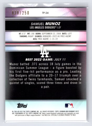 Samuel Munoz Refractor Purple /250 2022 Bowmans Best Top Prospects