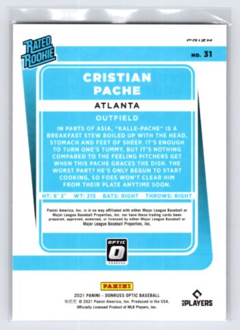 Christian Pache Refractor 2021 Donruss Optic Rated Prospect