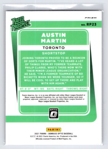 Austin Martin Refractor 2021 Donruss Optic Rated Prospect