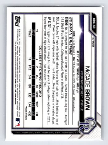 McCade Brown 2021 Bowman Chrome Refractor 1st Bowman