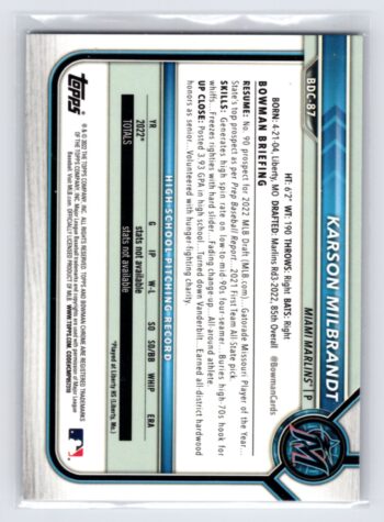 Karson Milbrandt Refractor 2022 Sky Blue Bowman Chrome