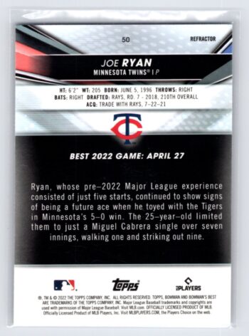 Joe Ryan RC Rookie Refractor 2022 Bowmans Best