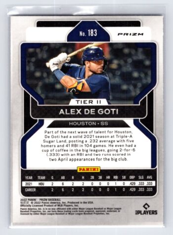 Alex De Goti RC Rookie Blue Refractor 2022 Prizm