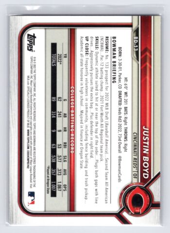 Justin Boyd Refractor 2022 Sky Blue Bowman Chrome
