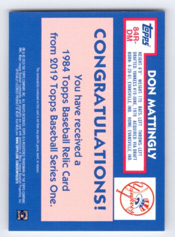 Don Mattingly Game-Used Bat Mem Topps 35th Anniversary