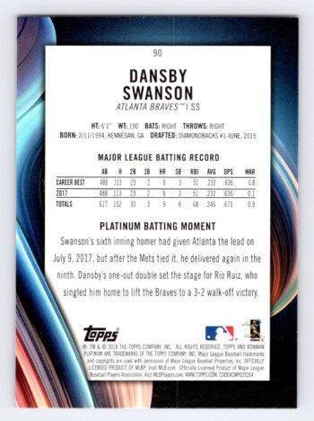 Dansby Swanson 1992 Bowman Chrome Design 92B-DSW