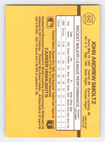 John Smoltz RC HoF 1989 Topps