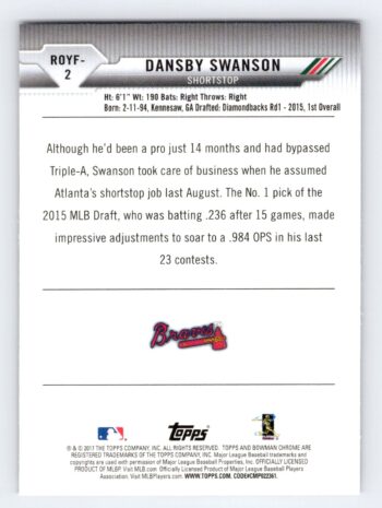 Dansby Swanson RC Donruss Rated Rookie
