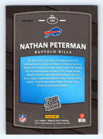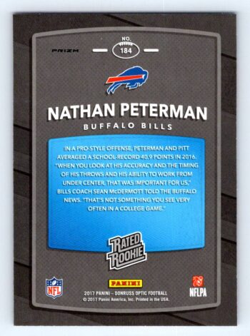 Nathan Peterman RC Silver Prizm Donruss Optic Rated Rookie
