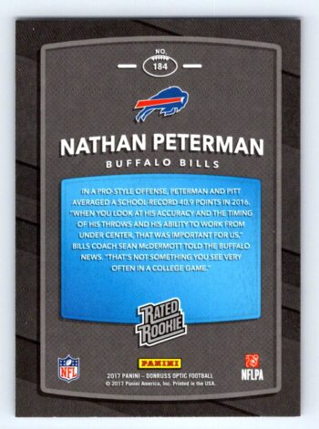 Nathan Peterman RC Donruss Optic Rated Rookie