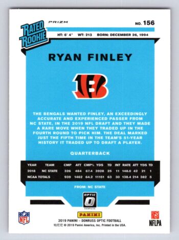 Ryan Finley RC Pink Donruss Optic Rated Rookie