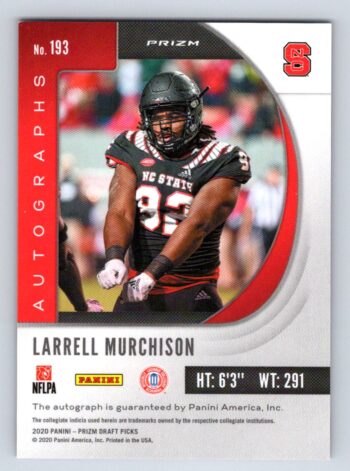 Larrell Murchison RC Autograph Blue Prizm Draft Picks