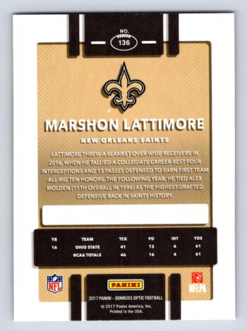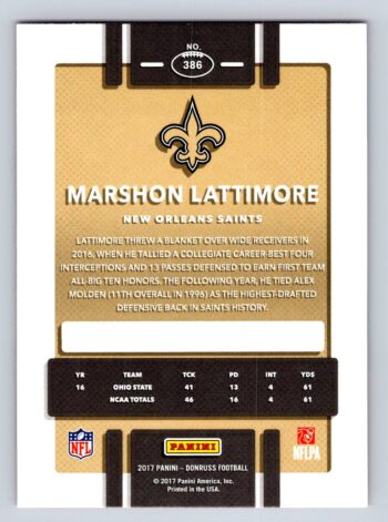 Marshon Lattimore /50 Autograph Panini Certified Potential