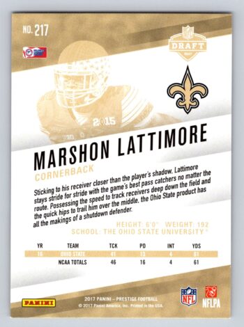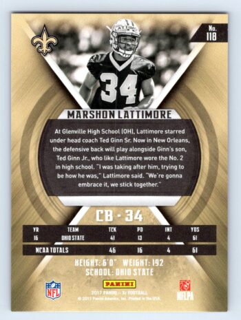 Marshon Lattimore /199 RC Blue Foil Panini XR
