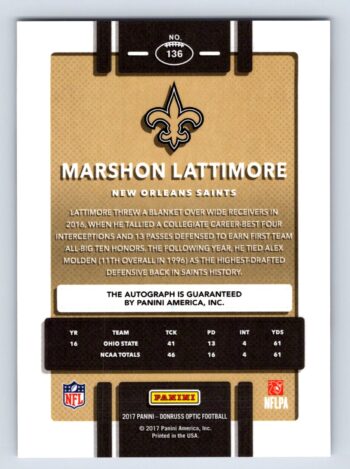 “Marshon Lattimore RC Autograph Donruss Optic” has been added to your cart.