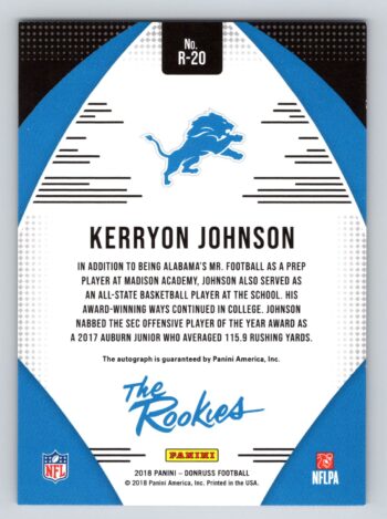 Kerryon Johnson /499 RC Autograph Donruss the Rookies