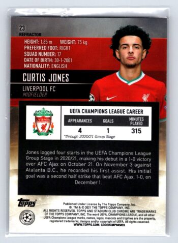 Curtis Jones RC Rookie Refractor 2021 Stadium Club UEFA Champions League