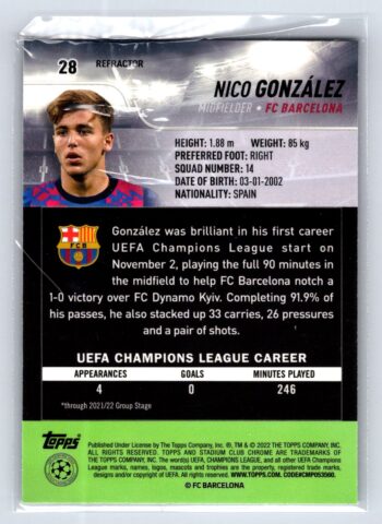 Nico Gonzalez RC Rookie Refractor 2022 Stadium Club UEFA Champions League