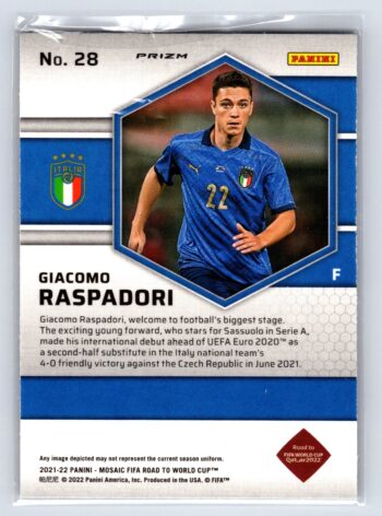 Giacomo Raspadori RC Rookie Refractor 2021-22 Mosaic FIFA World Cup