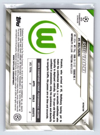 Aster Vranckx RC Rookie Refractor 2022 Topps Chrome UEFA Champions League