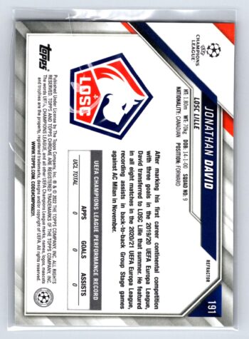 Jonathan David RC Rookie Refractor 2022 Topps Chrome UEFA Champions League