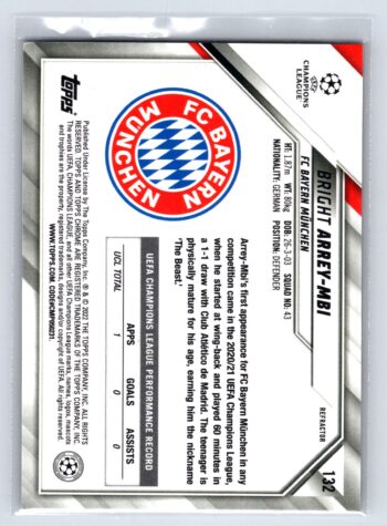 Bright Arrev-Mbi RC Rookie Refractor 2022 Topps Chrome UEFA Champions League
