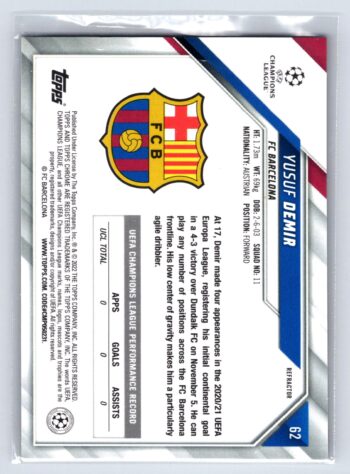 Yusuf Demir RC Rookie Refractor 2022 Topps Chrome UEFA Champions League