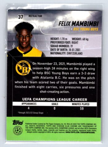 Felix Mambimbi RC Rookie Refractor 2022 Stadium Club UEFA Champions League