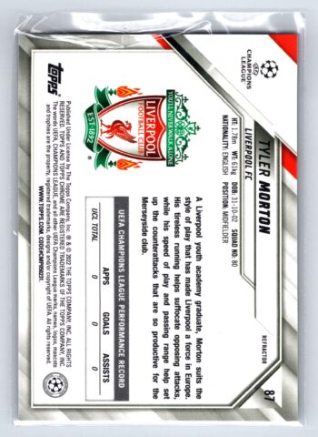 Tyler Morton RC Rookie Refractor 2022 Topps Chrome UEFA Champions League