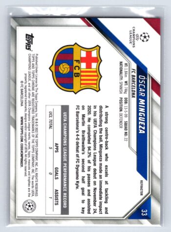Oscar Mingueza RC Rookie Refractor 2022 Topps Chrome UEFA Champions League