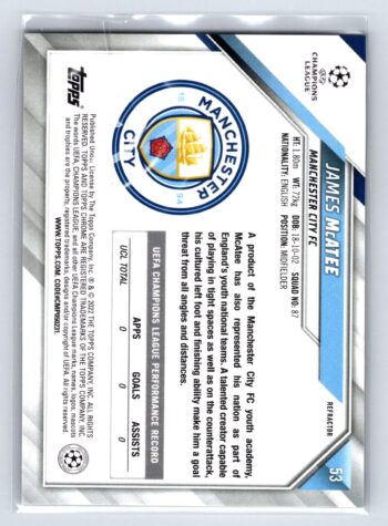 James McAtee RC Rookie Refractor 2022 Topps Chrome UEFA Champions League