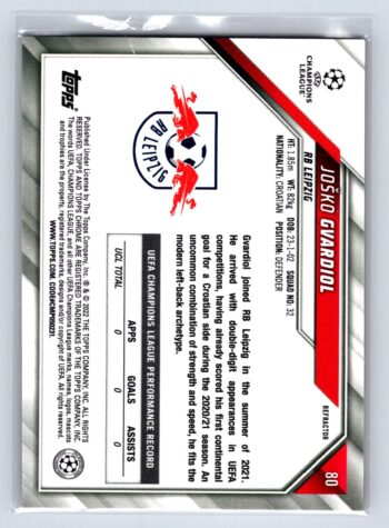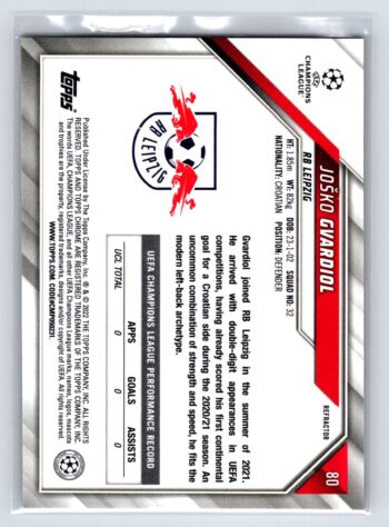 Josko Gvardiol RC Rookie Refractor 2022 Topps Chrome UEFA Champions League