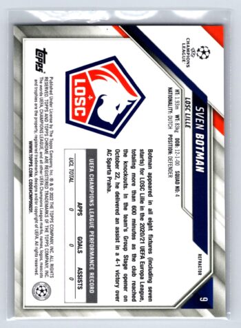 Sven Botman RC Rookie Refractor 2022 Topps Chrome UEFA Champions League