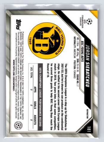 Jordan Siebatcheu RC Rookie Refractor 2022 Topps Chrome UEFA Champions League