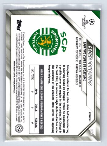 Pedro Goncalves RC Rookie Refractor 2022 Topps Chrome UEFA Champions League