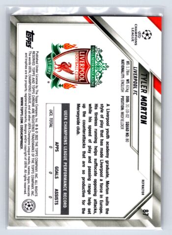 Tyler Morton RC Rookie Refractor 2022 Topps Chrome UEFA Champions League