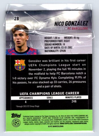 Nico Gonzalez RC Rookie Pink 2022 Stadium Club UEFA Champions League