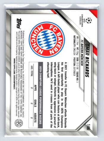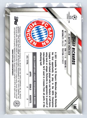 Omar Richards RC Rookie Black & White Raywave Refractor 2022 Topps Chrome UEFA Champions League